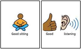 A range of symbolised notices of varying sizes that can be used to support the school's rules and behaviour policy.